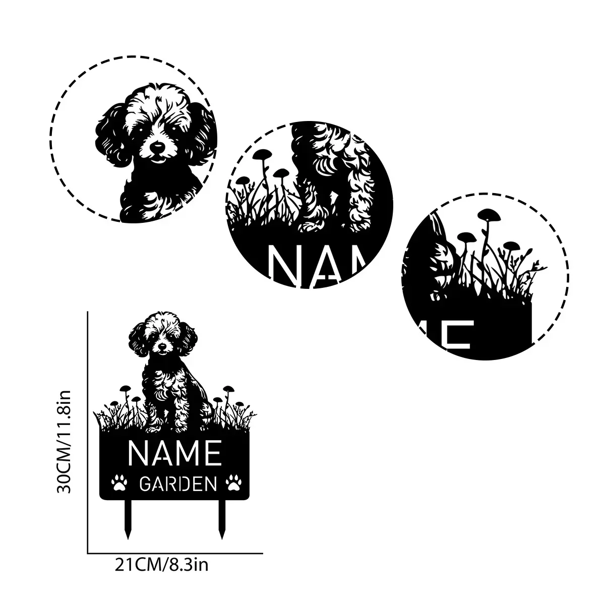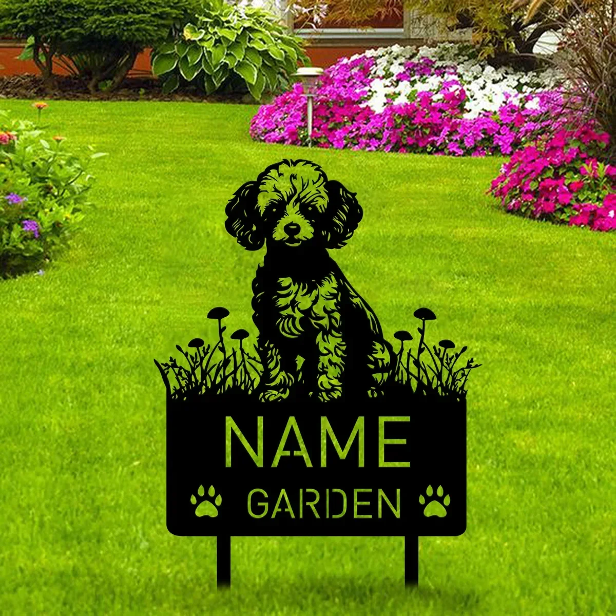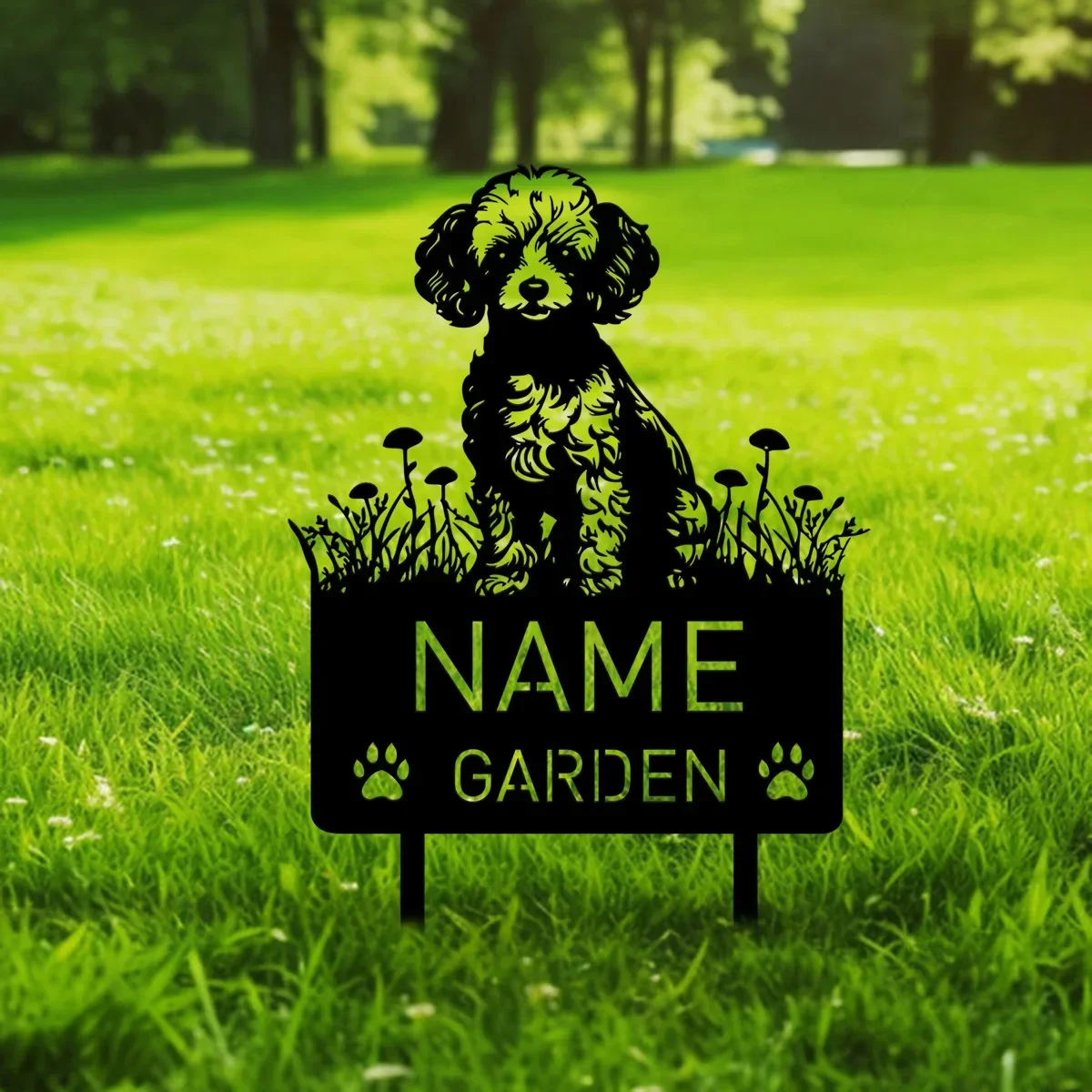 Miniature poodle metal garden stake