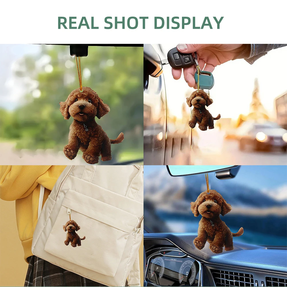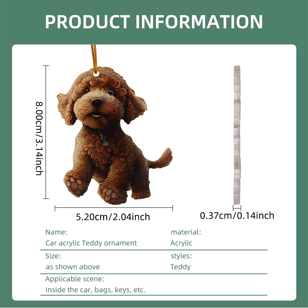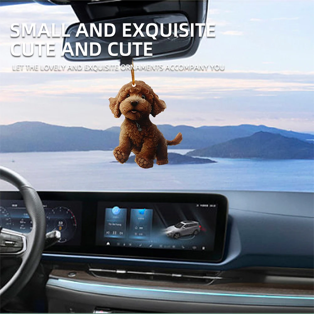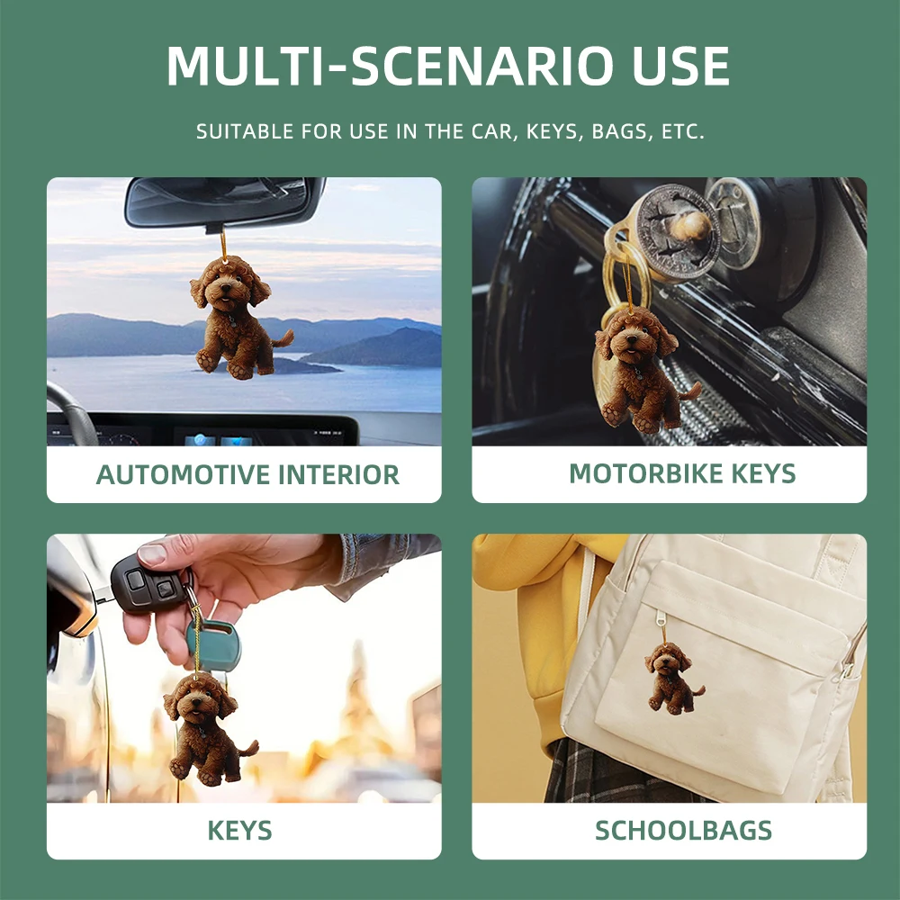 5x Christmas 2D Cute teddy Dog RearView Mirror Pendant Auto Interior Car Realistic Animal Hanging Ornament Bags Keys etc Decoration